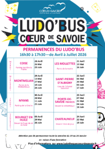 Pour permettre à tous, quel que soit son lieu d’habitation, d’avoir accès aux jeux, la ludothèque Cœur de Savoie se déplace en ludo’bus sur le territoire, vous pouvez venir nous rencontrer librement.